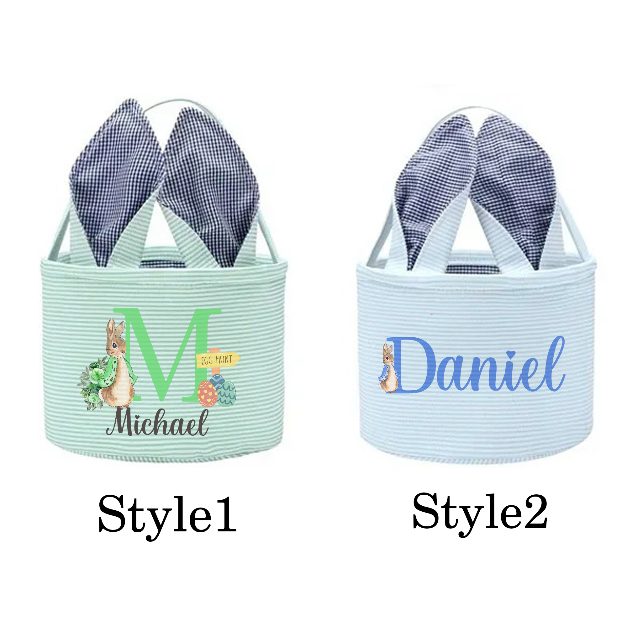 | Style | Custom Name Peter Rabbit Alphabet Easter Basket with Bunny Ears |