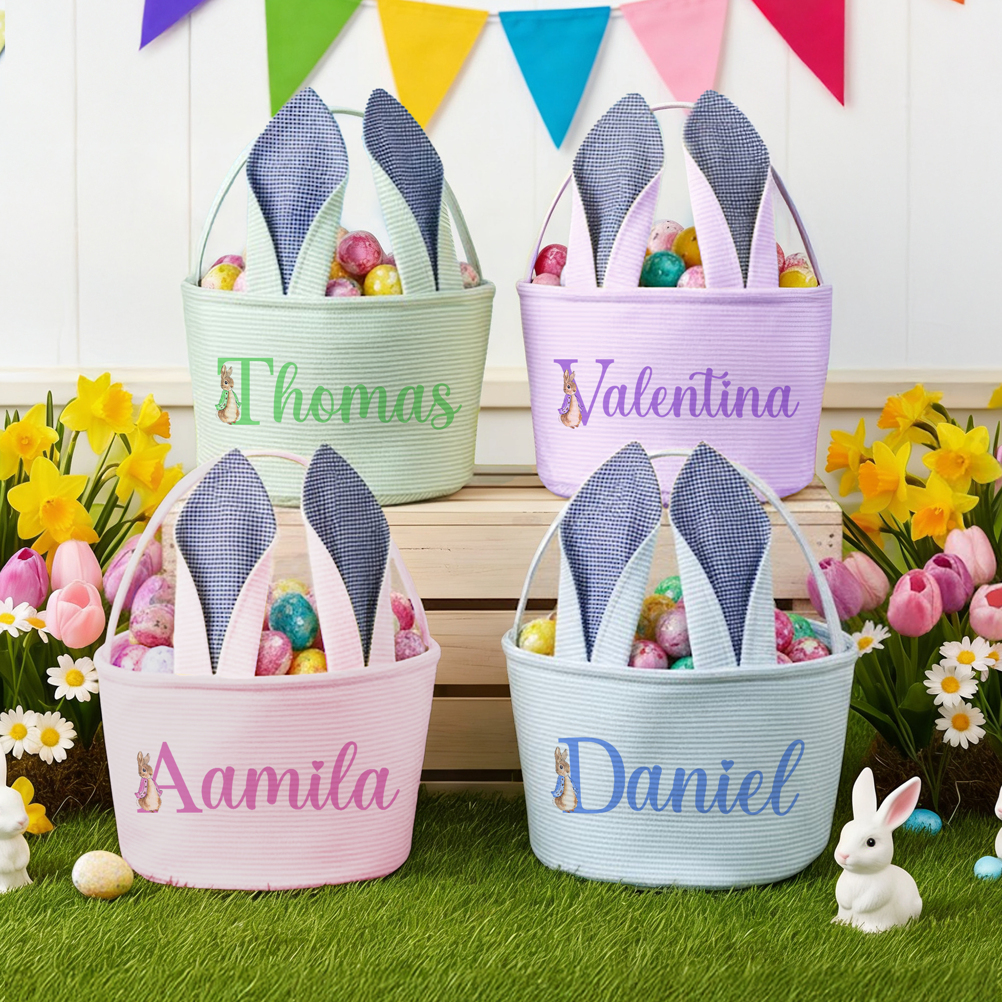 Personalized Name - You can add any name and initial to the front, turning this basket into a special keepsake your little one will enjoy year after year. The clear lettering stands out beautifully, helping kids spot their basket quickly during egg hunts.