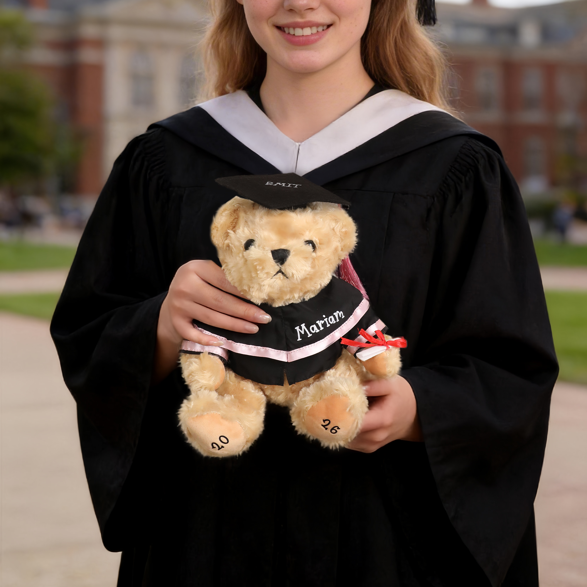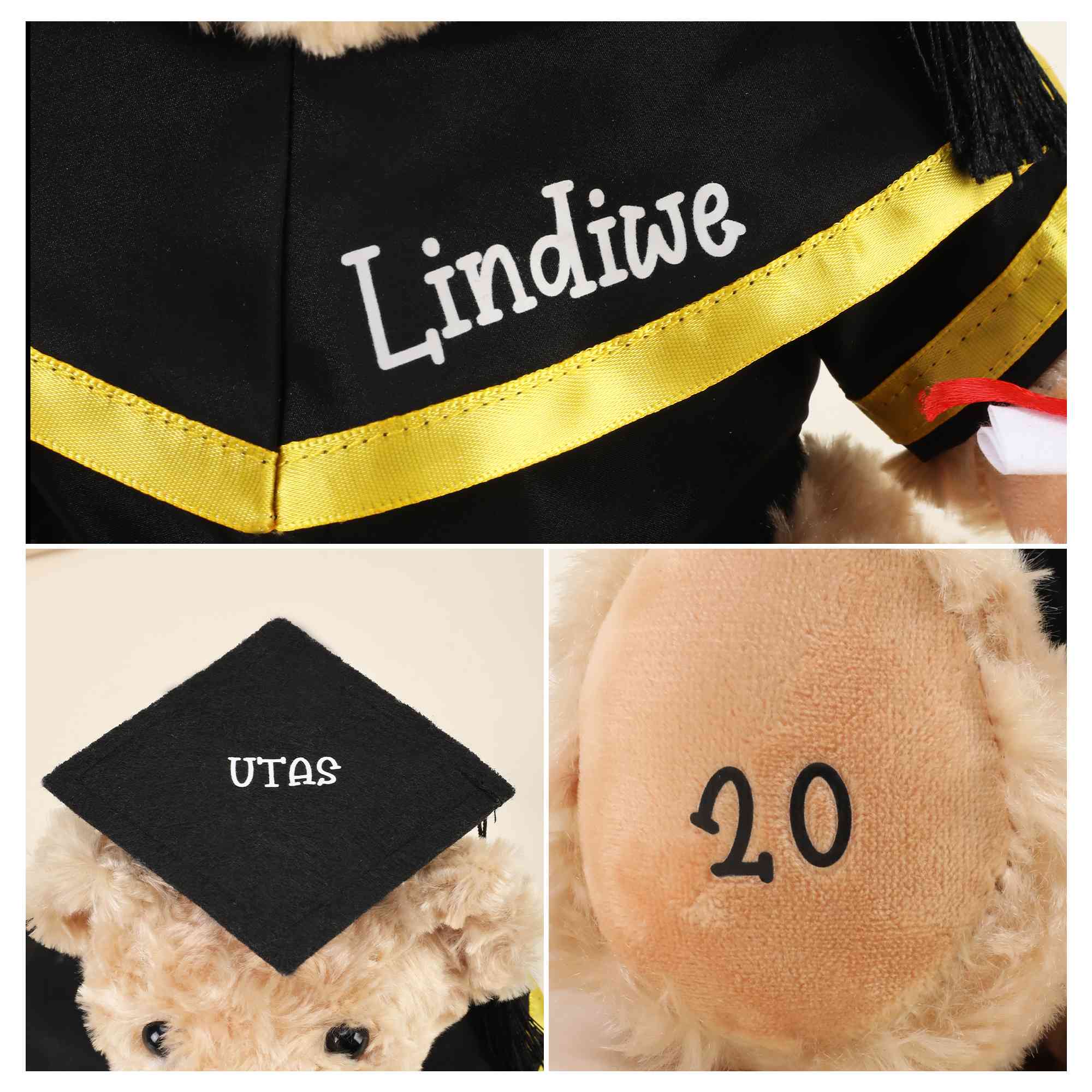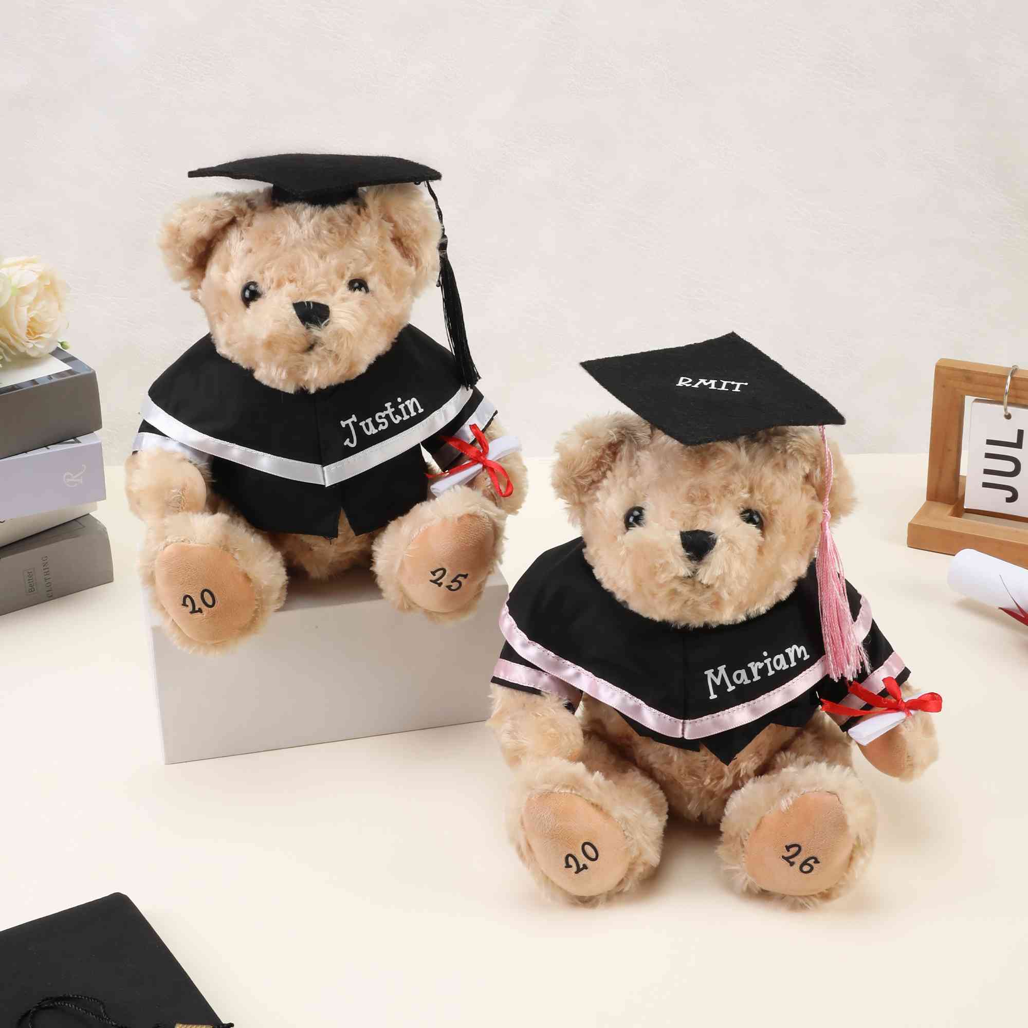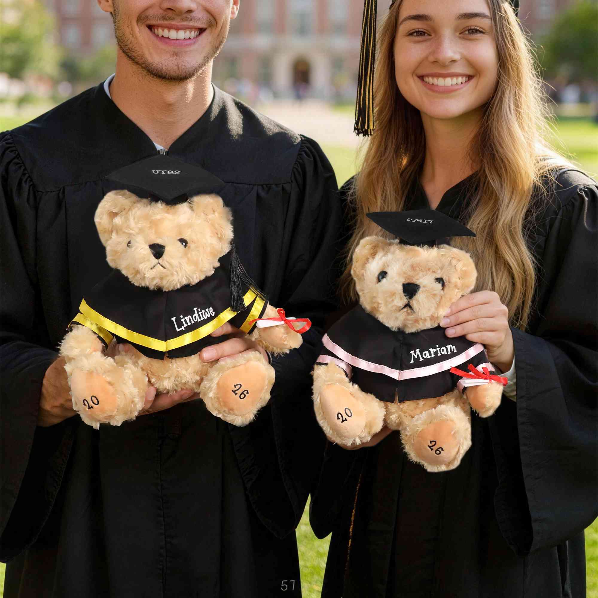 Custom Design - This adorable plush bear can be personalized with the graduate's name, school initials, and graduation year, creating a unique keepsake that celebrates their achievement.