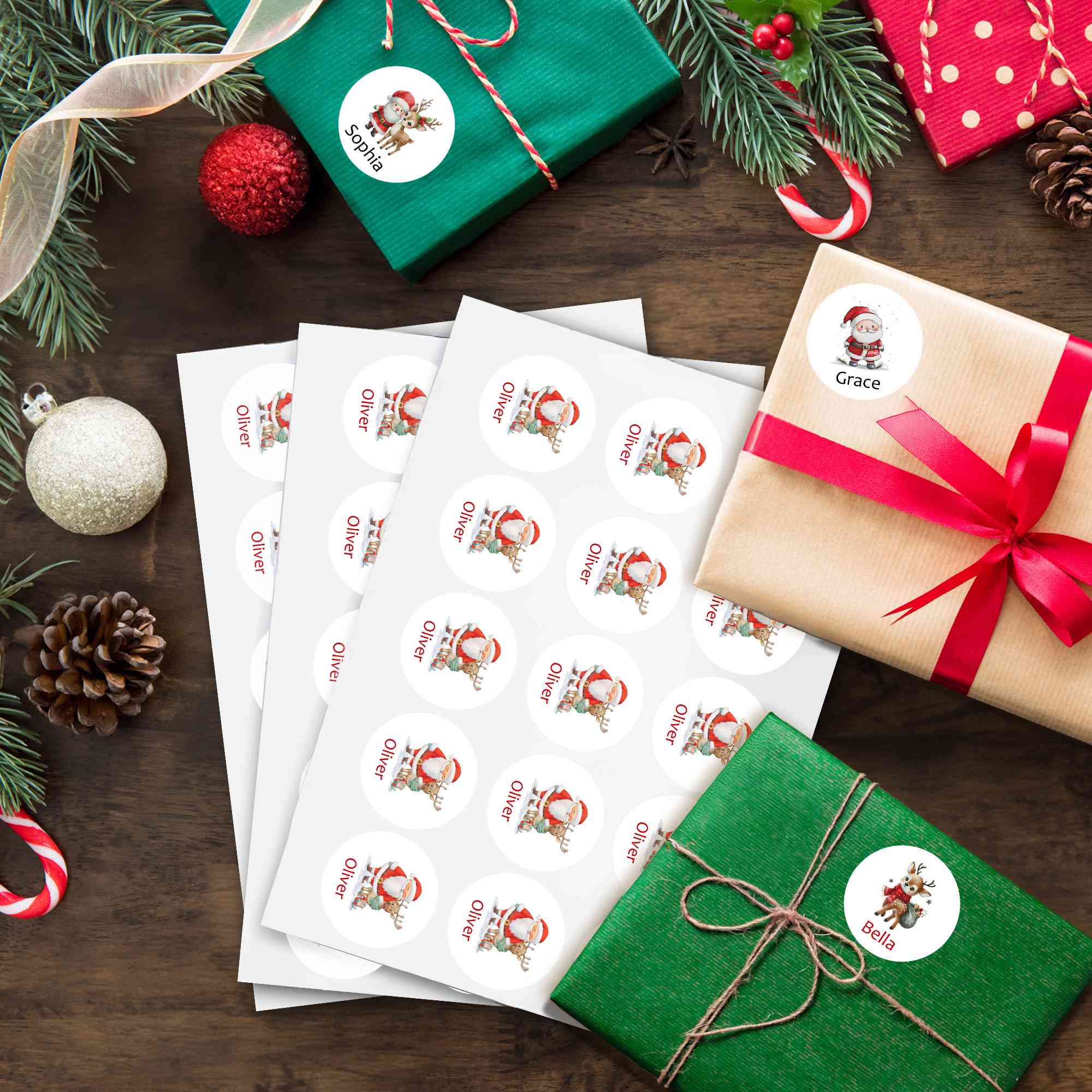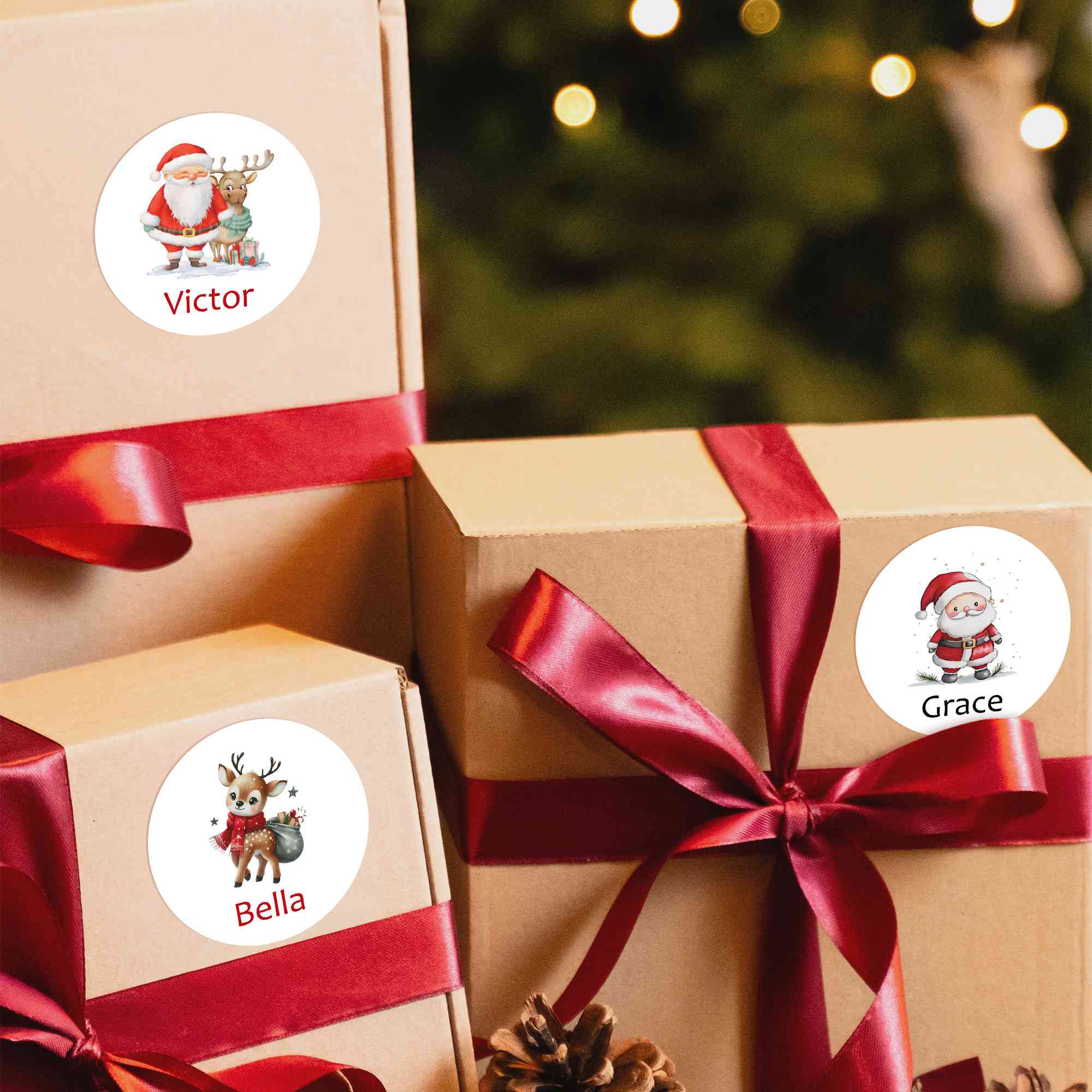 | Style | Personalized Name Santa Claus & Reindeer Christmas Stickers |