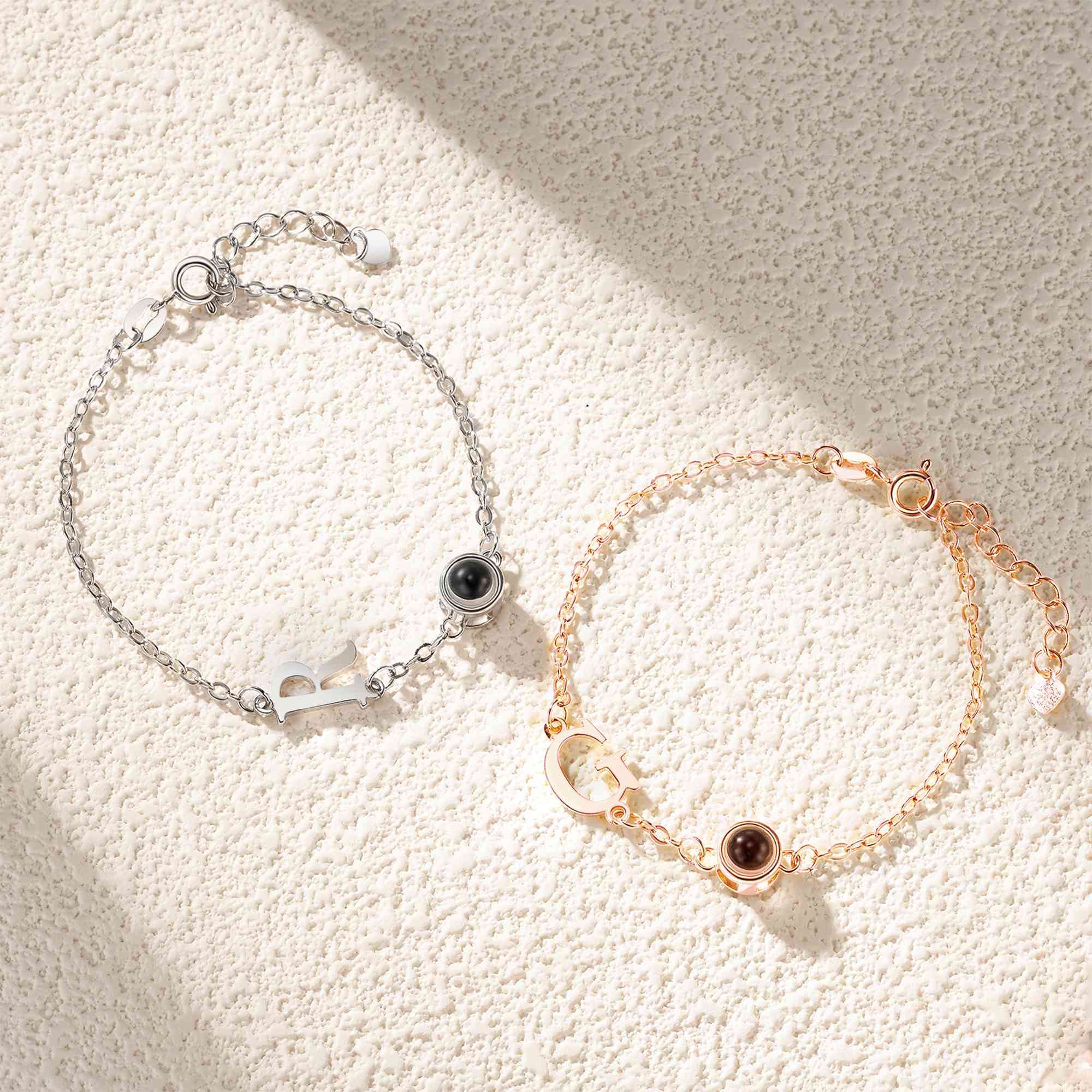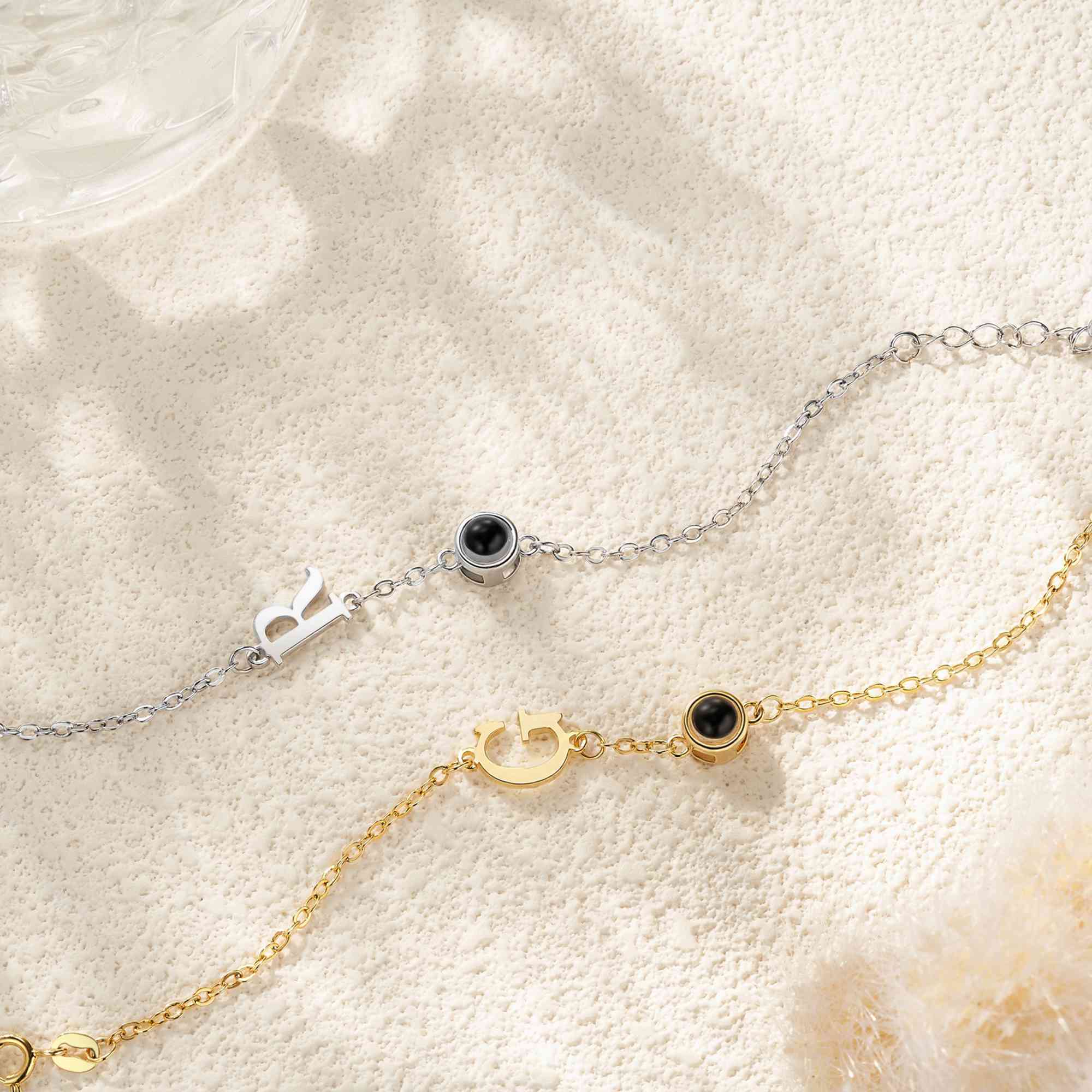 Custom Design - This unique bracelet features the ability to project a personalized photo, allowing you to carry cherished memories wherever you go. Accompanied by a customizable initial charm, this bracelet adds a personal touch that makes it a meaningful accessory.
