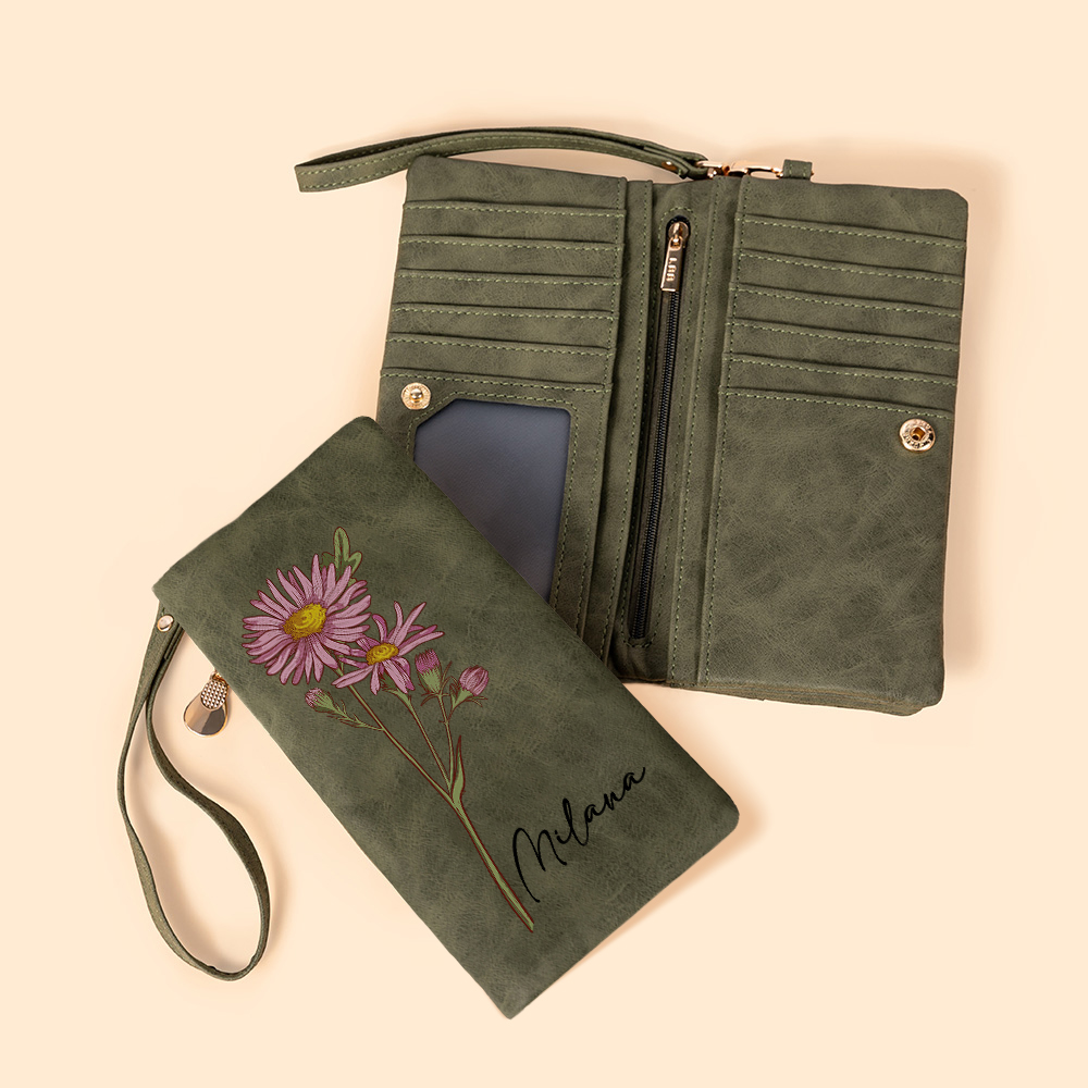 | Style | Personalized Watercolor Birth Flower Wallet for Woman |